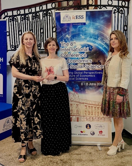 Doamna conf. dr. Carmen Acatrinei și doamna asist. dr. Mirela Türkeș au primit 𝑩𝒆𝒔𝒕 𝑷𝒂𝒑𝒆𝒓 𝑨𝒘𝒂𝒓𝒅 pentru lucrarea: "𝑇ℎ𝑒 𝐸ff𝑒𝑐𝑡 𝑜f 𝐷𝑟𝑖𝑣𝑒𝑟𝑠 𝑎𝑛𝑑 𝐵𝑎𝑟𝑟𝑖𝑒𝑟𝑠 𝑜𝑛 𝐸𝑙𝑒𝑐𝑡𝑟𝑖𝑐 𝑉𝑒ℎ𝑖𝑐𝑙𝑒 𝑈𝑠𝑎𝑔𝑒 𝑖𝑛 𝑅𝑜𝑚𝑎𝑛𝑖𝑎: F𝑖𝑛𝑑𝑖𝑛𝑔𝑠 f𝑟𝑜𝑚 𝑃𝐿𝑆-𝑆𝐸𝑀 𝑎𝑛𝑑 𝑀𝐺𝐴", în cadrul conferinţei ICESS 2025.